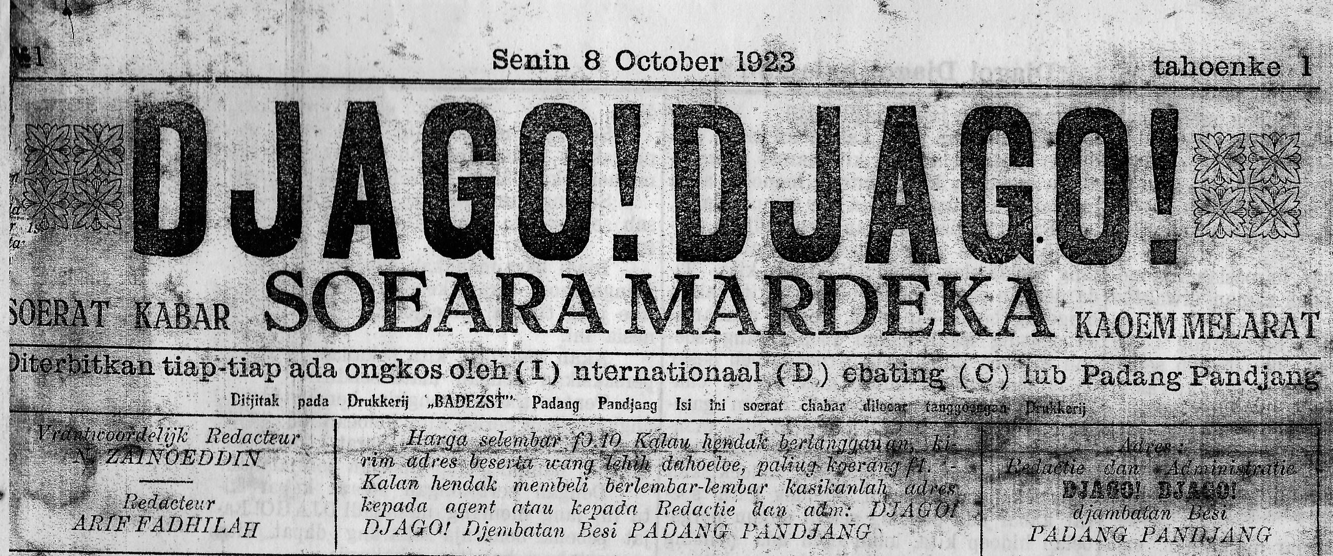 Djago! Djago! adalah nama sebuah surat kabar yang diterbitkan oleh kantor International Debating Club Padangpanjang, Sumatra Barat. Surat kabar ini terbit pertama kali pada 8 Oktober 1923 dan dipimpin oleh Natar Zainuddin dengan redakturnya Arif Fadhilah (Djago! Djago!, 8 Oktober 1923). Surat kabar ini dicetak sebanyak enam halaman, memakai slogan “suara merdeka kaum melarat”. Menilik slogan yang diusung, koran ini jelas diarahkan pada kaum miskin, tani, buruh, dan mereka yang lemah secara ekonomi (Sufyan 2017: 56).